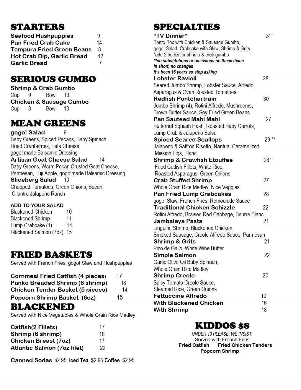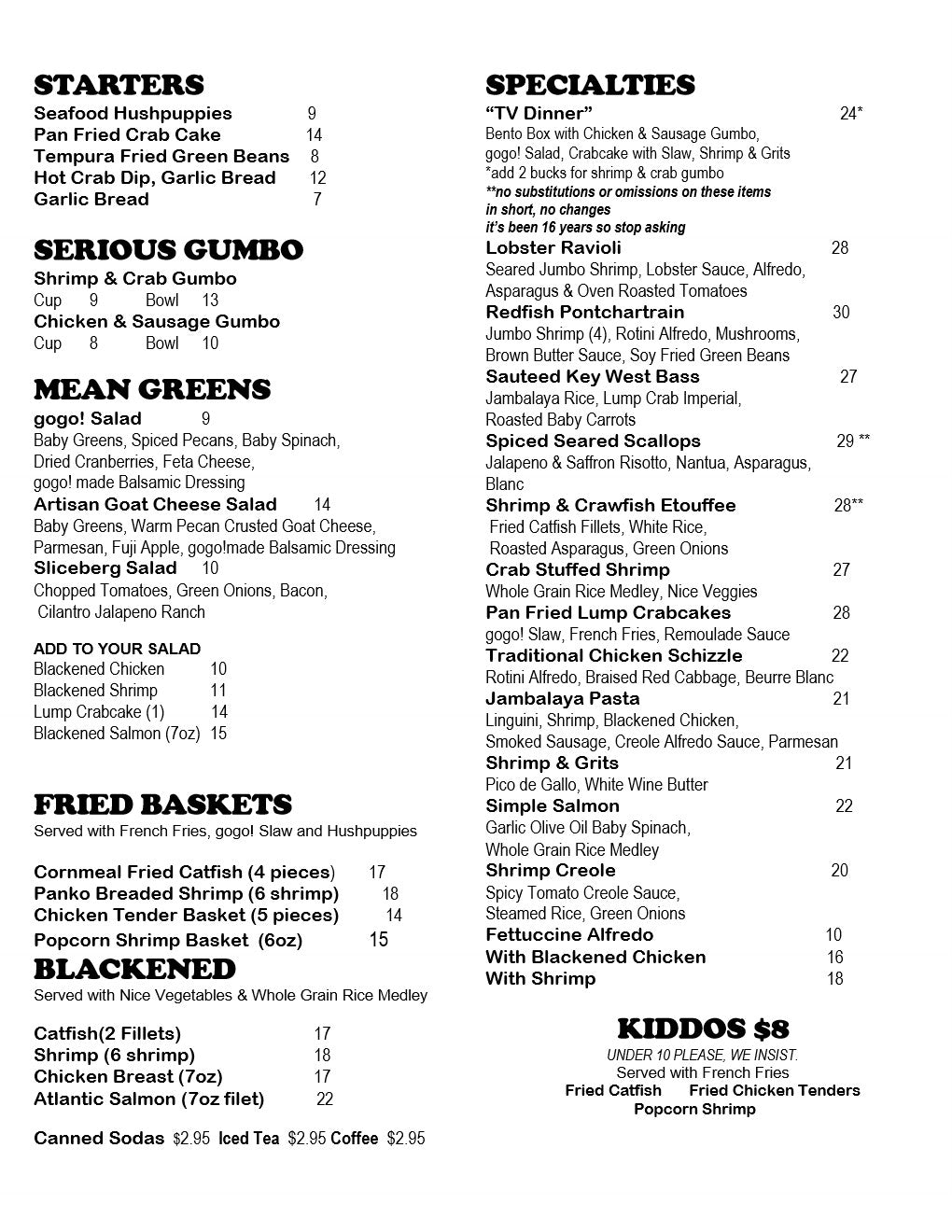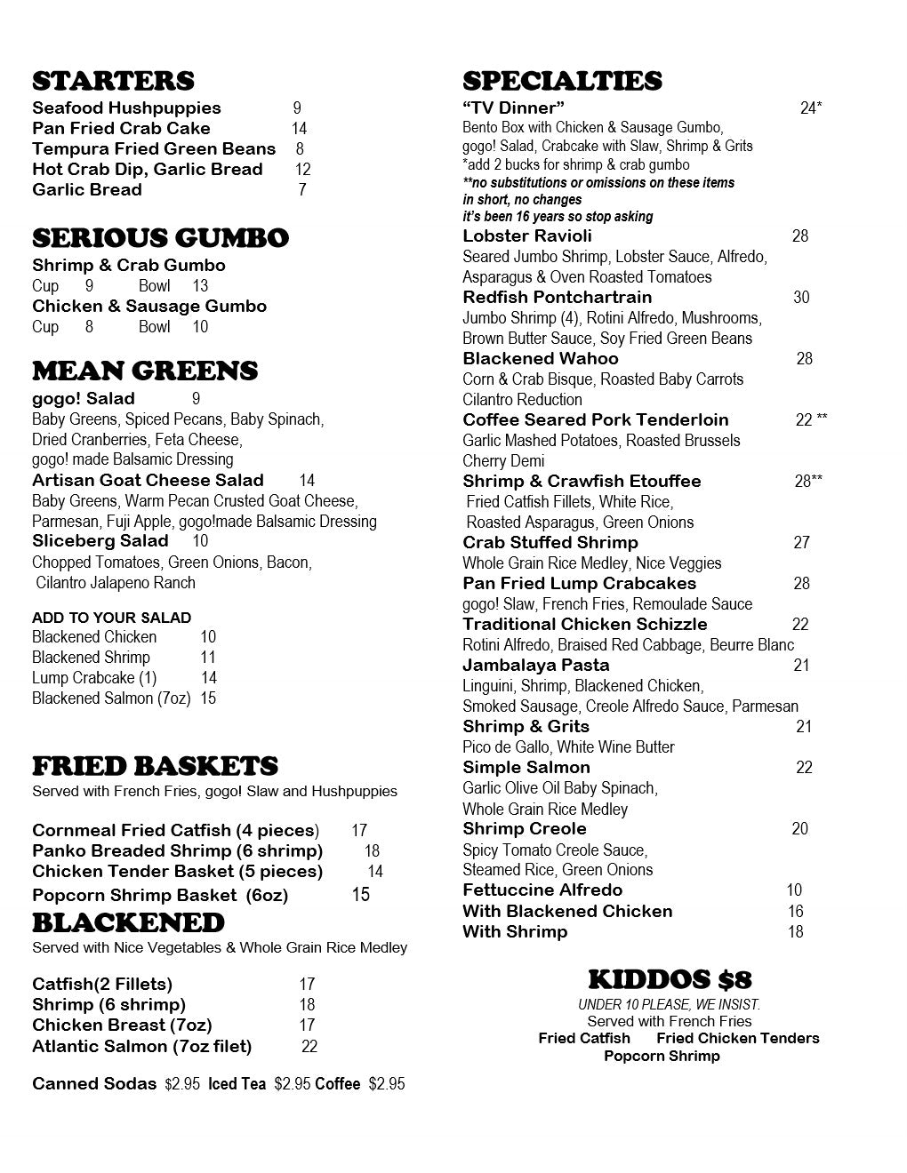 Cooking Classes are taught by gogo! Chef Owner Jon Hebert. The cost includes a demonstration, the recipes and seated dinner. The teaching portion lasts about an hour and fifteen minutes followed by dinner and lively conversation. Your paid ticket is non-refundable but is transferable to another individual should you be unable to attend. BYOB event.
